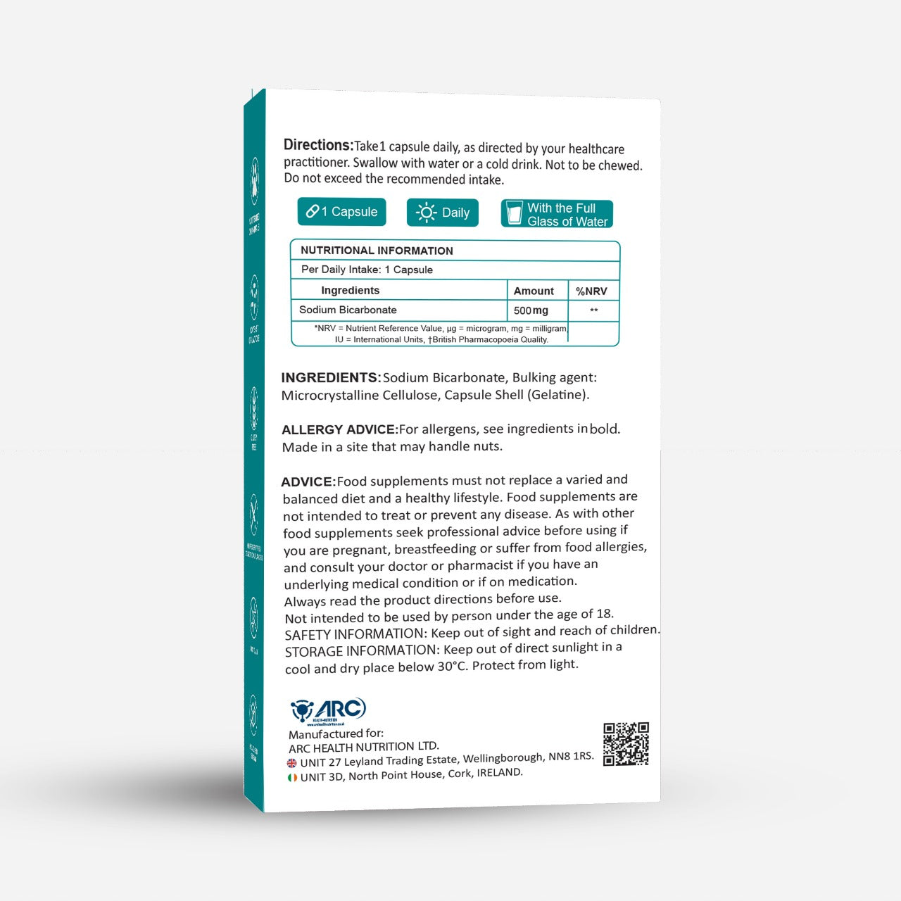 Sodium Bicarbonate 500mg 28 Capsules - Food Supplement - Suitable for Men & Women - Made in UK