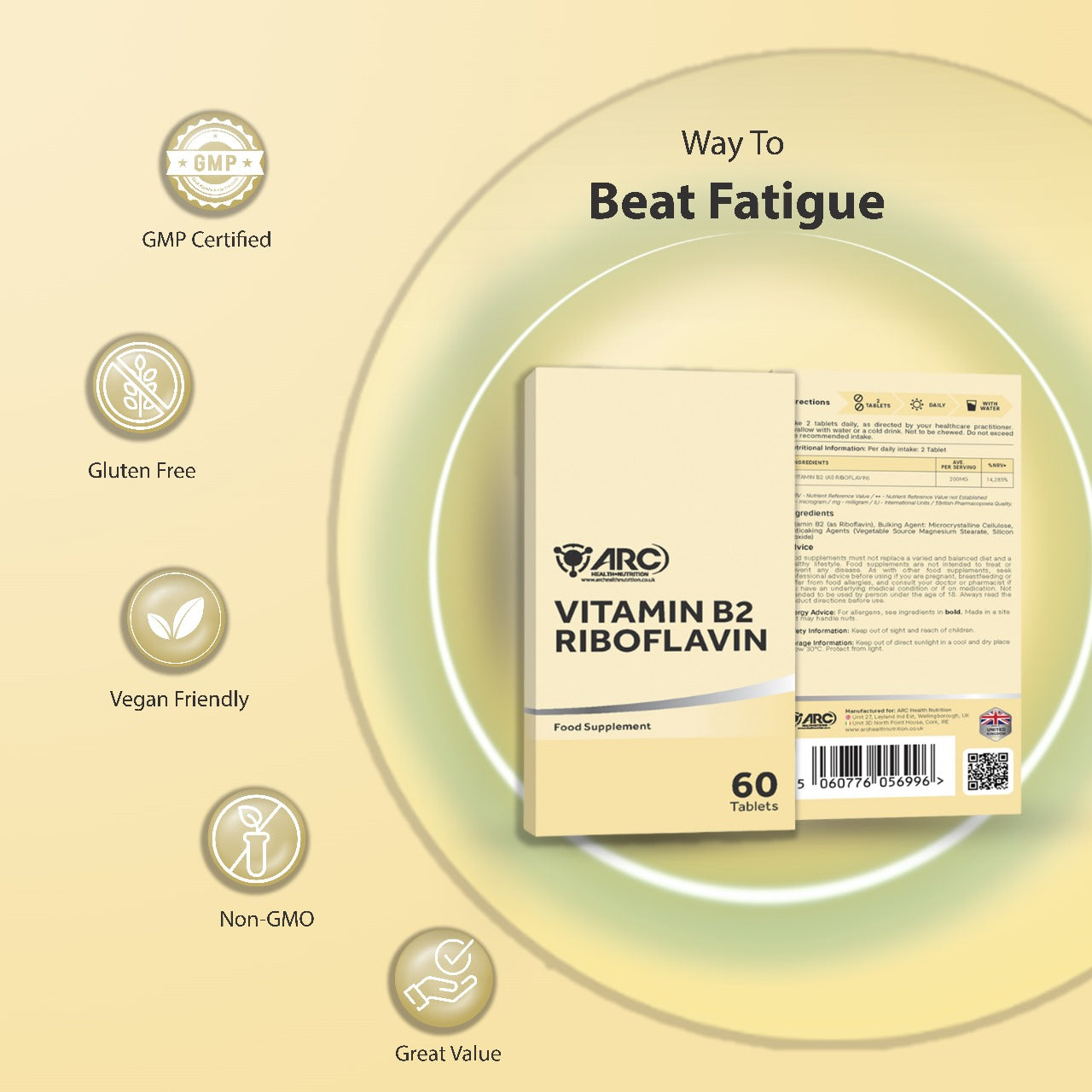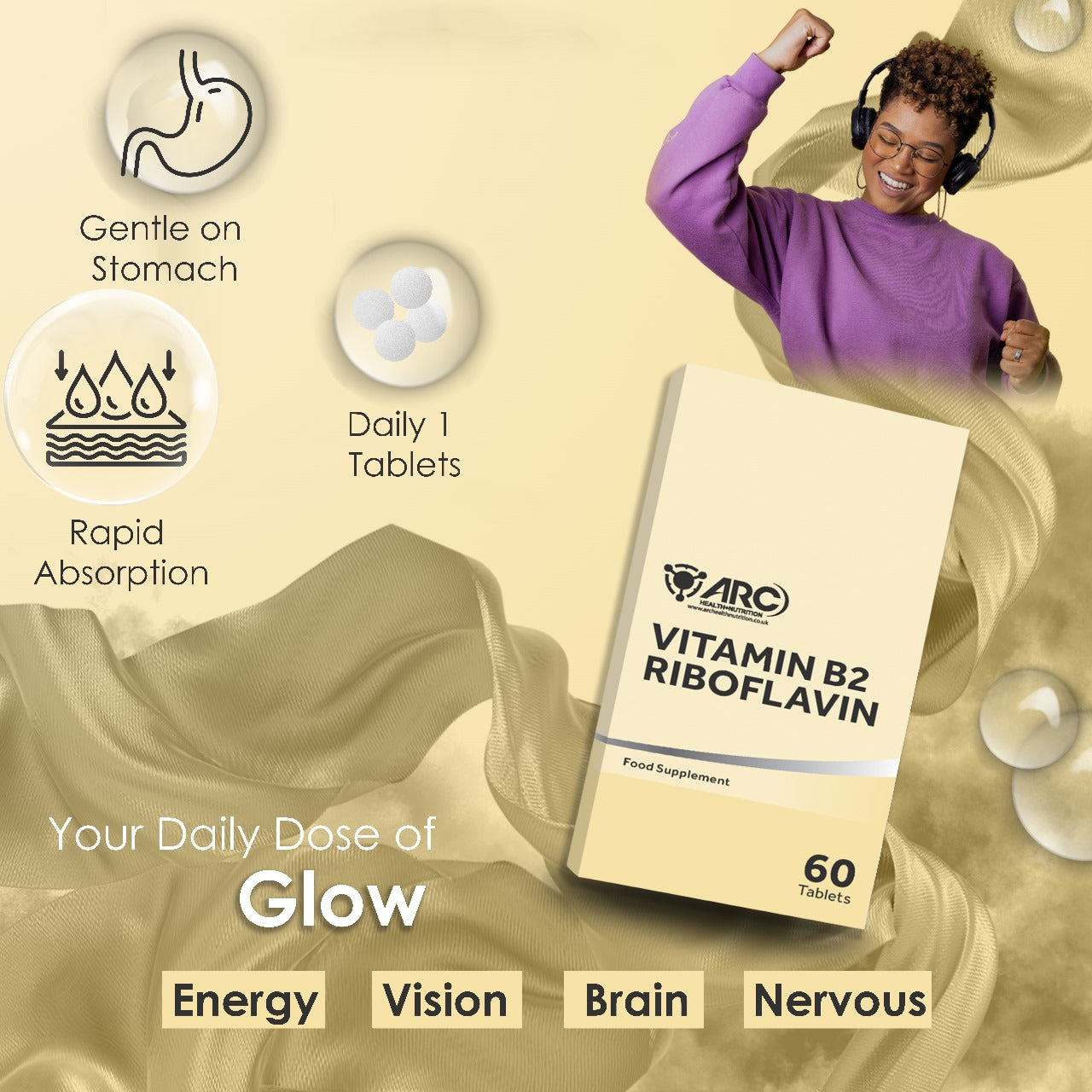 • This Vitamin B2 400 mg product is suitable for vegan and vegetarian diets. Non-GMO formulation, perfect for those looking for plant-friendly and lifestyle-conscious supplements.