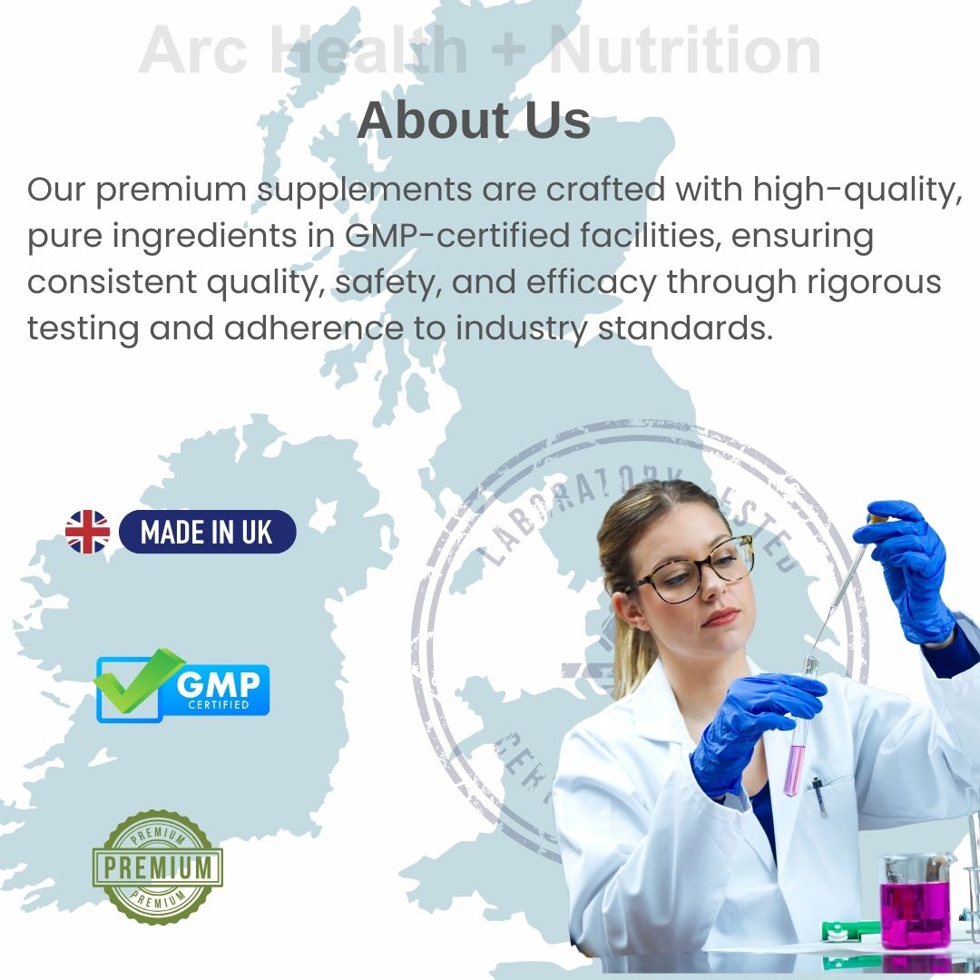This product should not be used as a substitute for a varied and balanced diet or a healthy lifestyle. Side effects from this supplement are rare. Please discontinue use and contact your GP immediately in the event of an adverse reaction. This product is not intended to diagnose, treat, cure or prevent any disease. We recommend pregnant and breastfeeding women seek medical advice before using food supplements. For allergens, see ingredients in bold. Keep out of sight and reach of children. Storage: Keep out of direct sunlight in a cool and dry place.